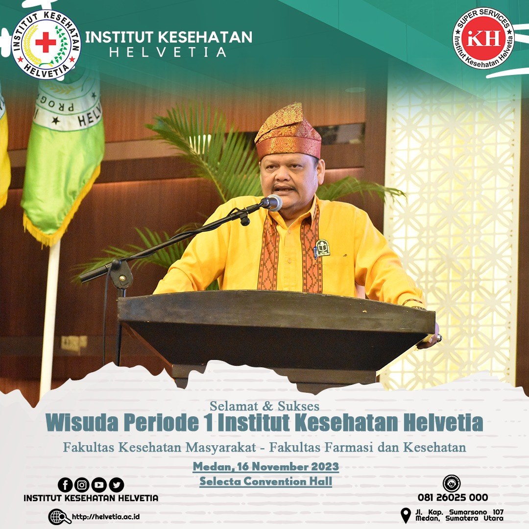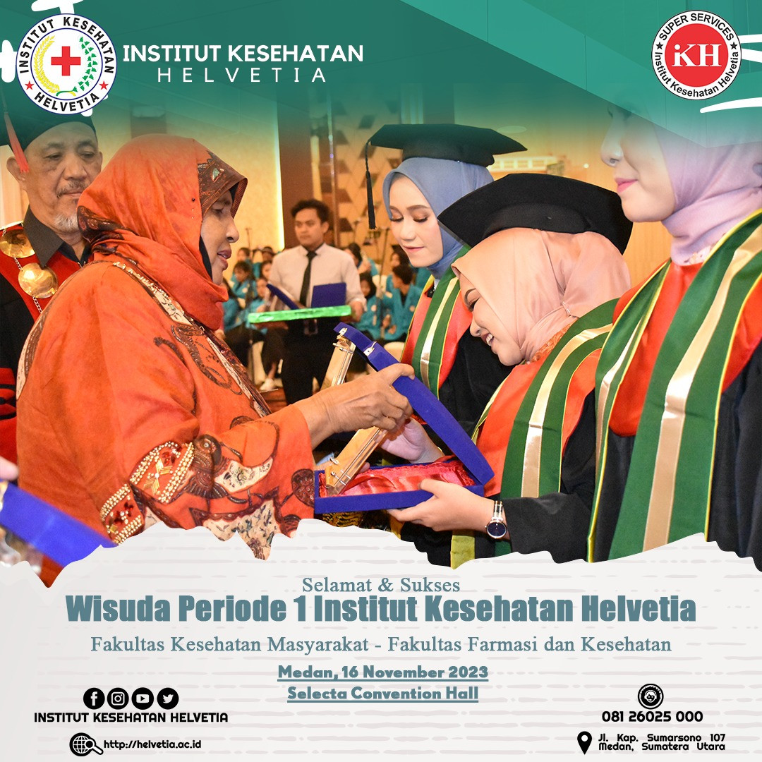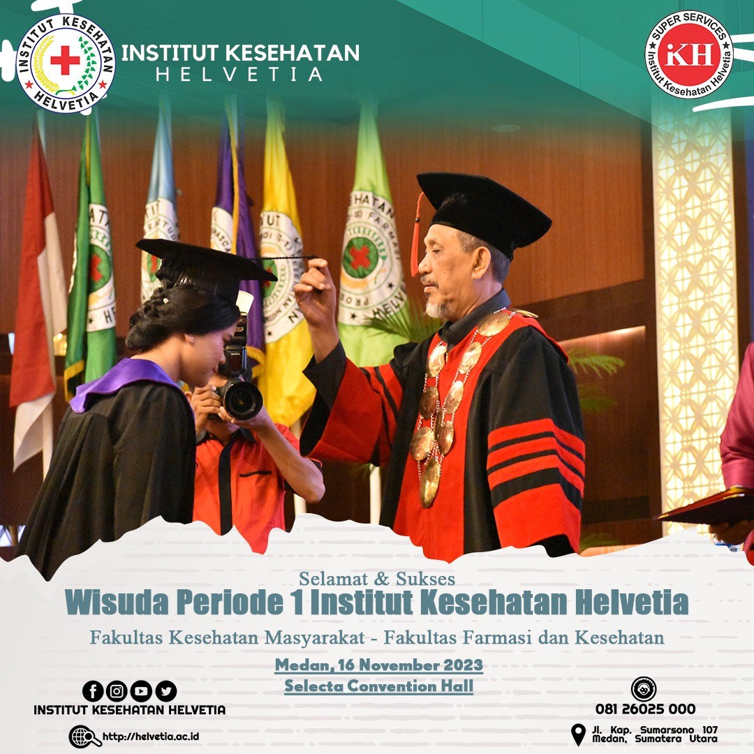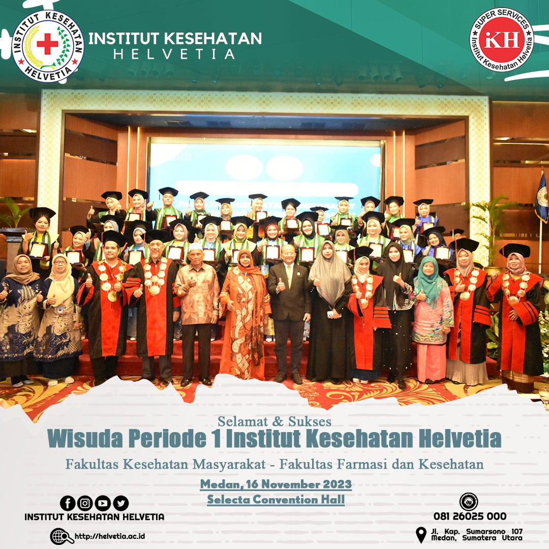 Selamat dan sukses, Wisuda Institut Kesehatan Helvetia Periode 1, Fakultas Kesehatan Masyakarat – Fakultas Farmasi dan Kesehatan. Pada acara wisuda kali ini, Institut Kesehatan Helvetia berhasil meluluskan 1229 wisudawan/wisudawati yang berasal dari 12 program studi. Wisuda kali ini juga dihadiri oleh Pembina Yayasan Inkes Helvetia, Dr. dr. Razia Begum Suroyo, MKes, Kepala LLDIKTI Wilayah I Sumut Prof. Drs. Saiful Anwar Matondang, MA., PhD yang diwakilkan oleh Harianto, SSos., MSi. Hadir juga ketua APTISI Sumatera Utara Dr. H. Muhammad Isa Indrawan, SE., MM, Ketua ABP-PTSI Sumtera Utara Dr. H. Bahdin Nur Tanjung, Wakil Rektor I, Aida Fitri, SKM., MS. Wakil Rektor II Teguh Suharto, SE., MKes, para dekan, dosen dan sivitas akademika Institut Kesehatan Helvetia.
