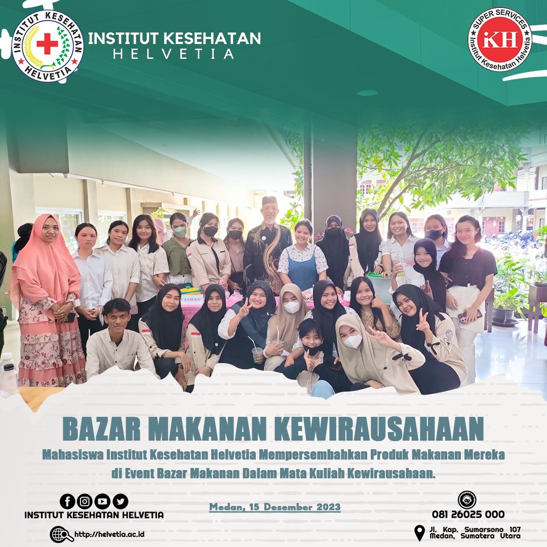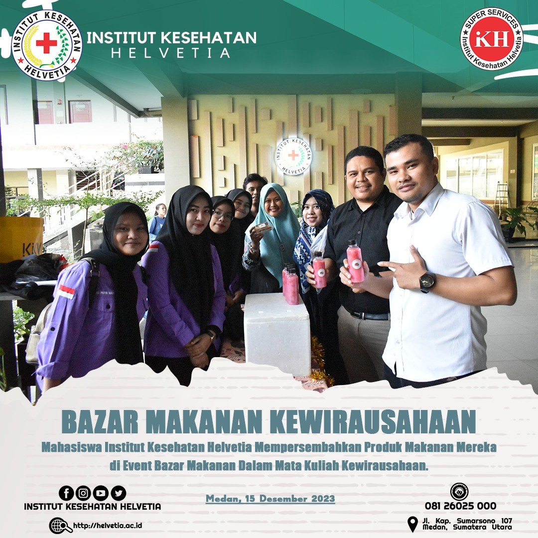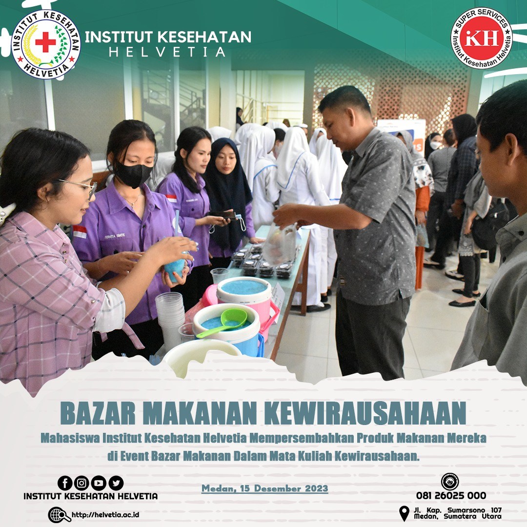 Institut Kesehatan Helvetia memeriahkan event Bazar Makanan di Institut Kesehatan Helvetia. Kegiatan ini sebagai bagian dari mata kuliah kewirausahaan yang ada di Inkes Helvetia.