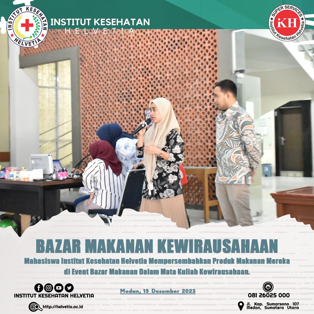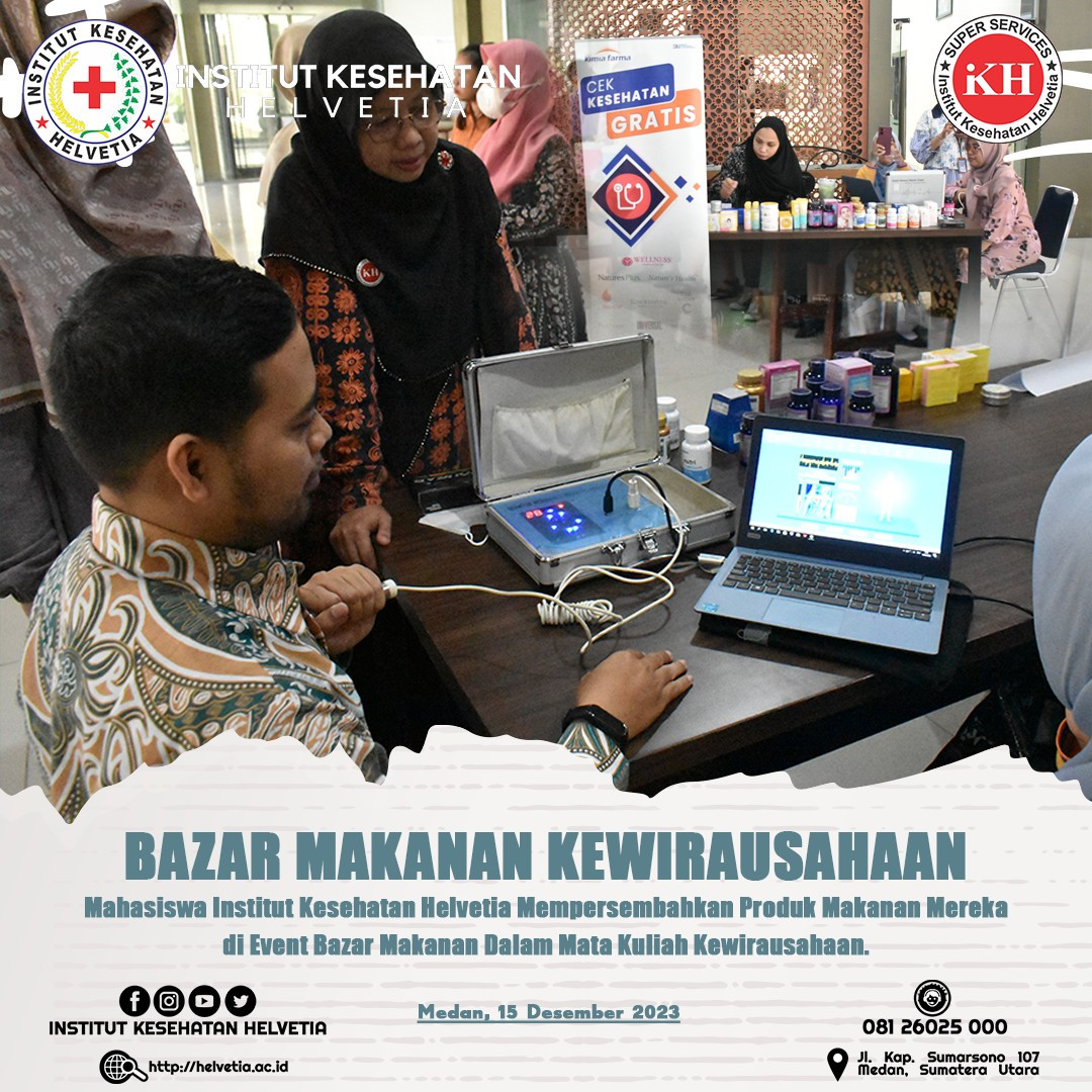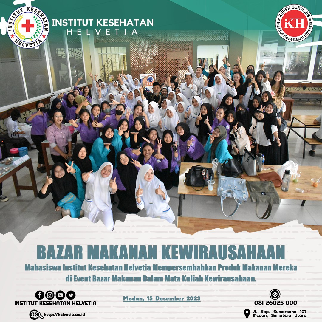 Institut Kesehatan Helvetia memeriahkan event Bazar Makanan di Institut Kesehatan Helvetia. Kegiatan ini sebagai bagian dari mata kuliah kewirausahaan yang ada di Inkes Helvetia.