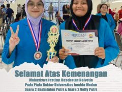 Selamat atas prestasi Mahasiswa – Mahasiswi Institut Kesehatan Helvetia yang berhasil meraih juara 2 Badminton putri dan juara 2 Voly putri di kejuaran Piala Rektor Univesitas Imelda Medan.